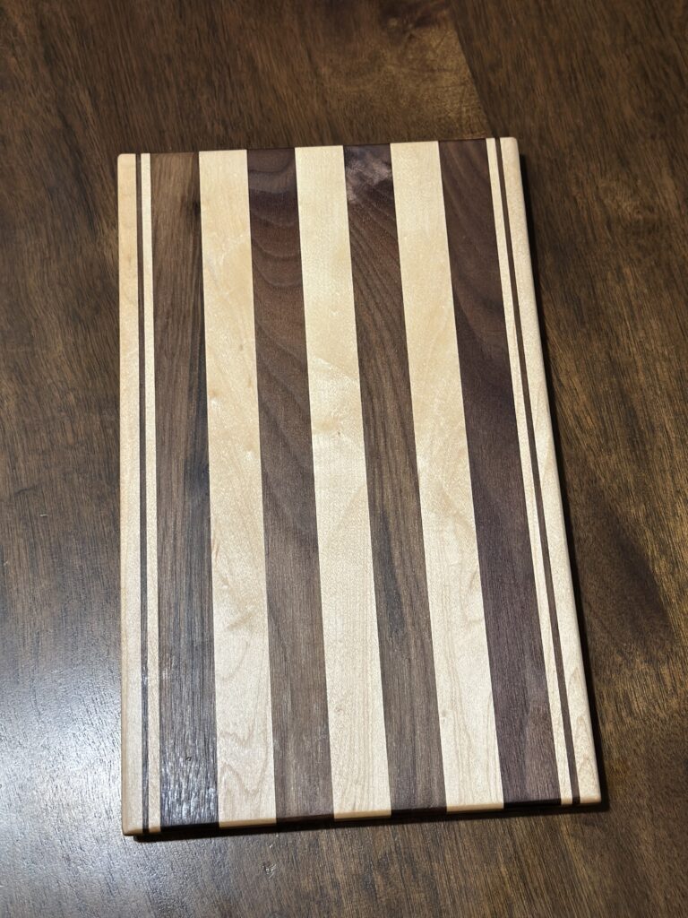 $45 – Walnut/Maple Charcuterie board with 4 rubber feet.